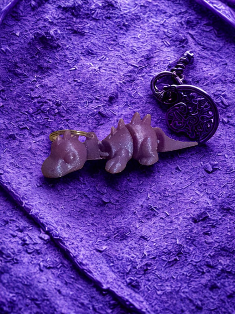 A pocket-sized companion with a powerful sparkle. Glimmer is a cute dragon charm made from a stunning glittering purple material. It's the perfect way to make your keys instantly recognizable and adds a pop of fantasy to your everyday carry.